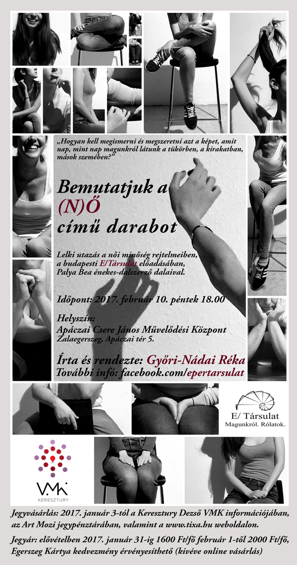 Jegyvásárlás: 2017. január 3-tól a Keresztury Dezső VMK információjában, az Art Mozi jegypénztárában, valamint a www.tixa.hu webldalon: https://tixa.hu/no_szindarab_zalaegerszeg Az Art Mozi január 5-11-ig zárva tart.