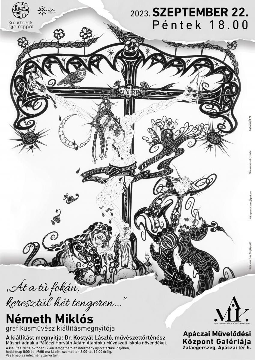 A kiállítás képeit Németh Miklós közel harminc év különböző időszakaiban alkotta. Címe egy bibliai idézetre utal, amikor Jézus azt mondja, hogy könnyebb a tevének átlépni egy tű fokán, mint egy gazdag embernek belépni a mennyek országába. Műveit a külföldi utazásai során, templomok falain látott híres festők munkái, valamint jó barátja, dr. Blázy Árpád Biblia gyűjteménye, és a klasszikus képzőművészet iránti közös szenvedélyük inspirálta. A fekete-fehér tusrajzok akvarell papírra készültek: hagyományos témák, nem egészen hagyományos módon megrajzolva, a művész a maga stílusában formázta újra azt, ahogyan ezek a régi tematikák az érzelmeire hatottak. Mostani tárlata önmagából egy része; irányzata nem tartozik a hivatalos izmusok ágazataihoz, hisz számára csupán egy művészet létezik: igaz, vagy hamis.