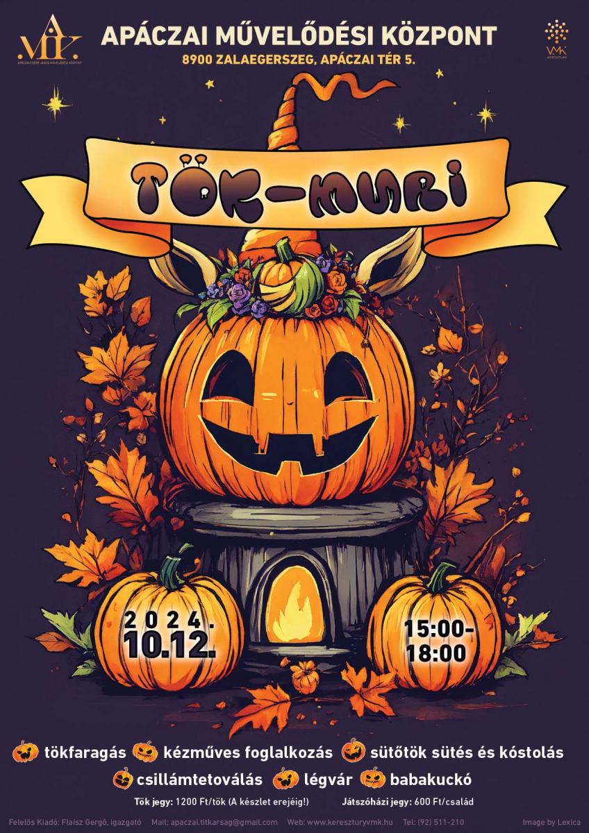 Hangulatos családi délután tökfaragással, kézműves foglalkozással, sütőtök sütéssel és kóstolással, csillámtetoválással, légvárral, babakuckóval.