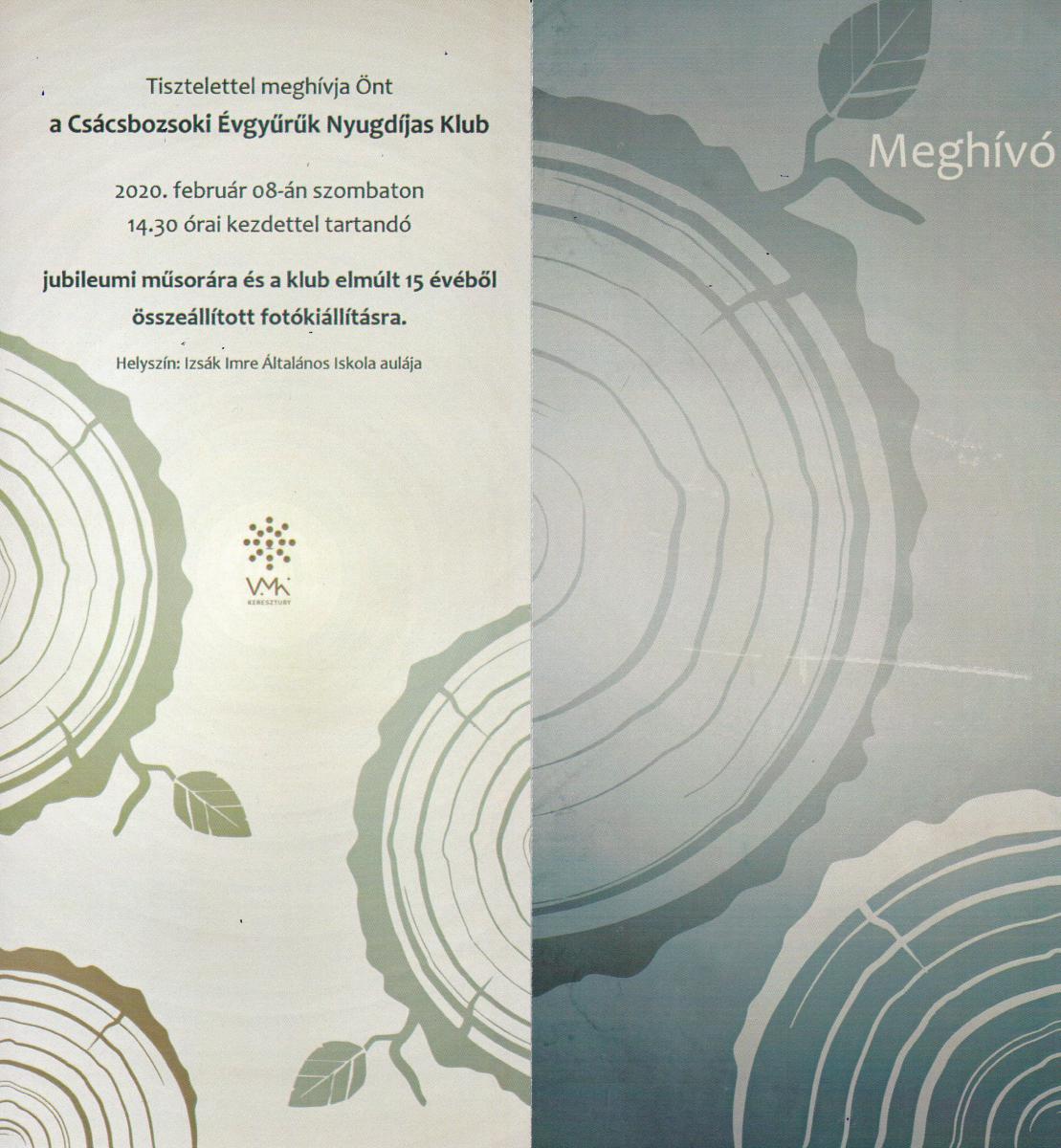 A tagok már másfél évtizedet töltöttek együtt, amely nagyon szép időszak. A klub ennek az évfordulónak kapcsán jubileumi műsort és fotókiállítást szervez, melyre szeretettel vár minden kedves érdeklődőt.