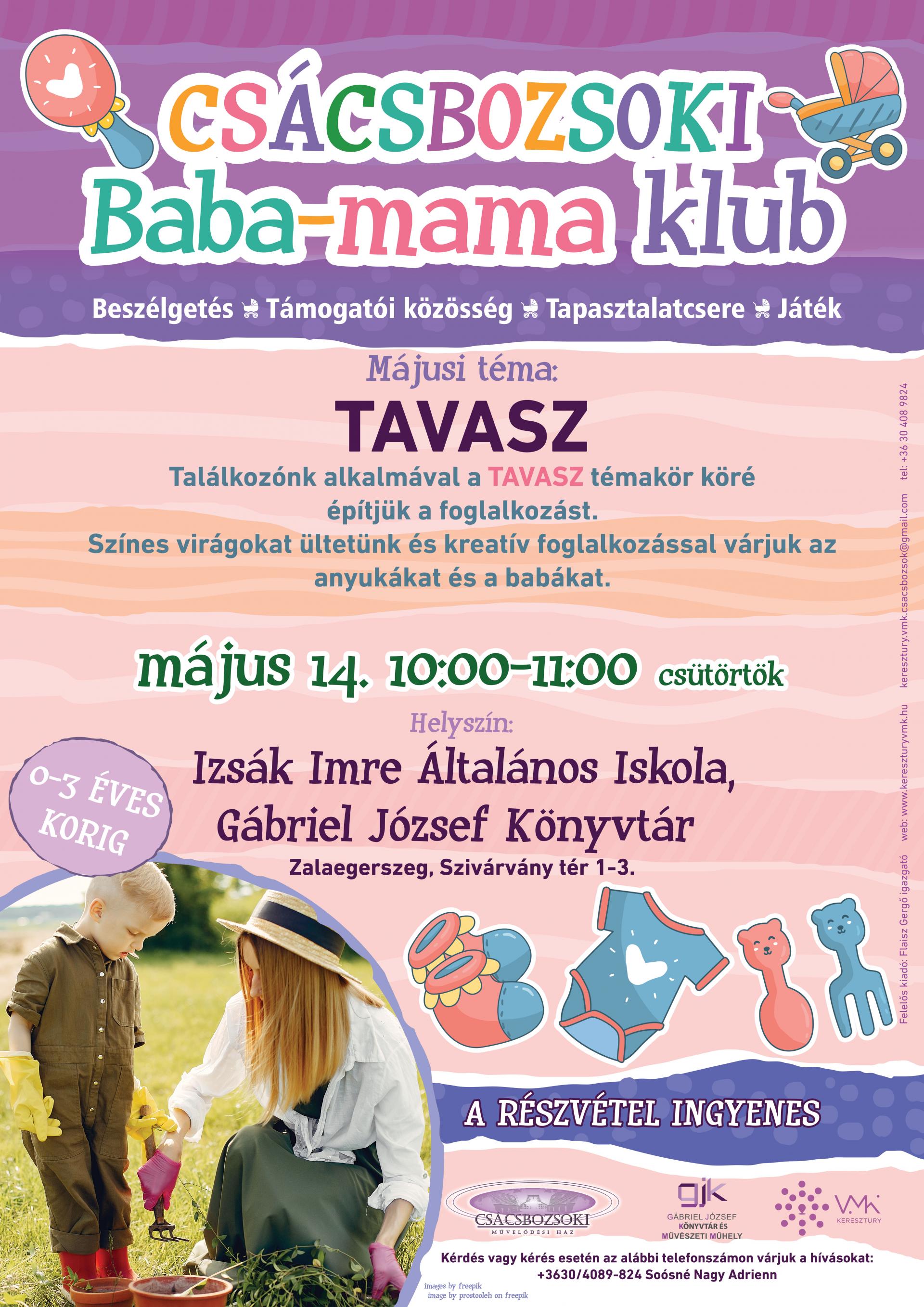 Minden hónapban, külön tematika köré építjük az ismerkedős, informatív, baráti találkozásokat. Májusban a Tavasz témakör köré építjük a foglalkozást.