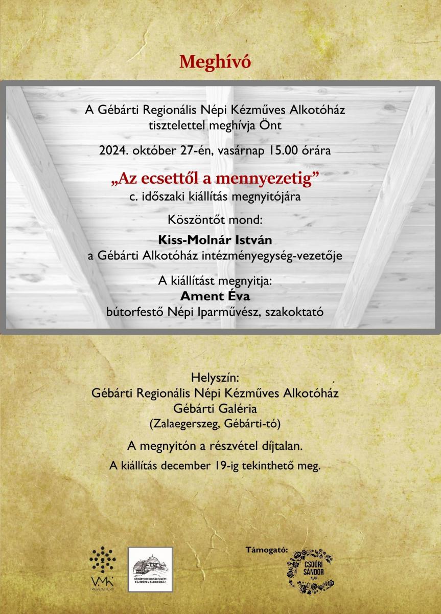 Helyszín: Gébárti Regionális Népi Kézműves Alkotóház (8900 Zalaegerszeg, Gébárti-tó)