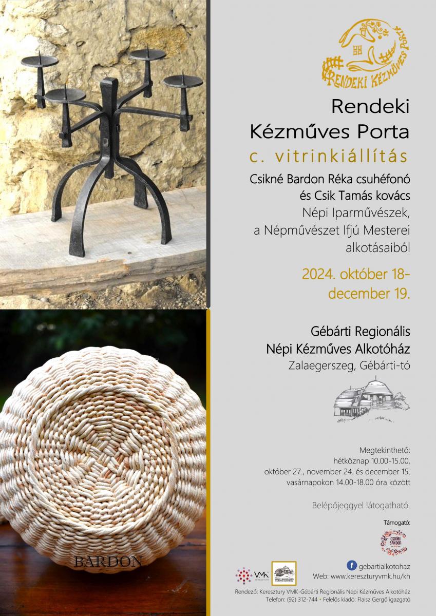 Helyszín: Gébárti Regionális Népi Kézműves Alkotóház közösségi tere (8900 Zalaegerszeg, Gébárti-tó)