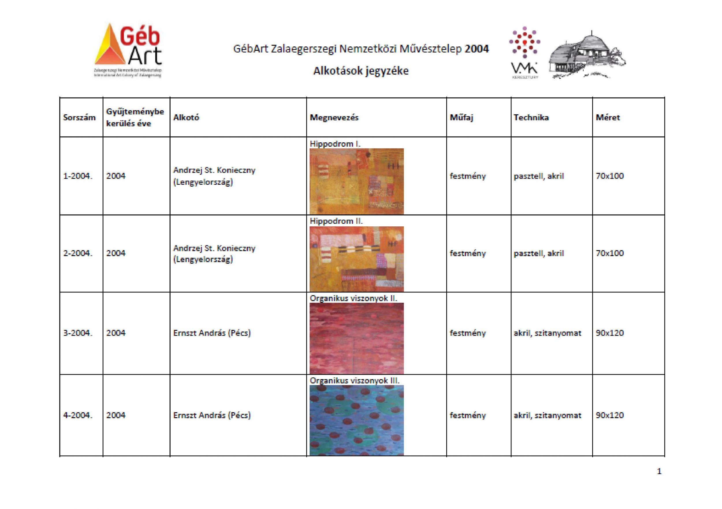 2004. évi alkotások jegyzéke