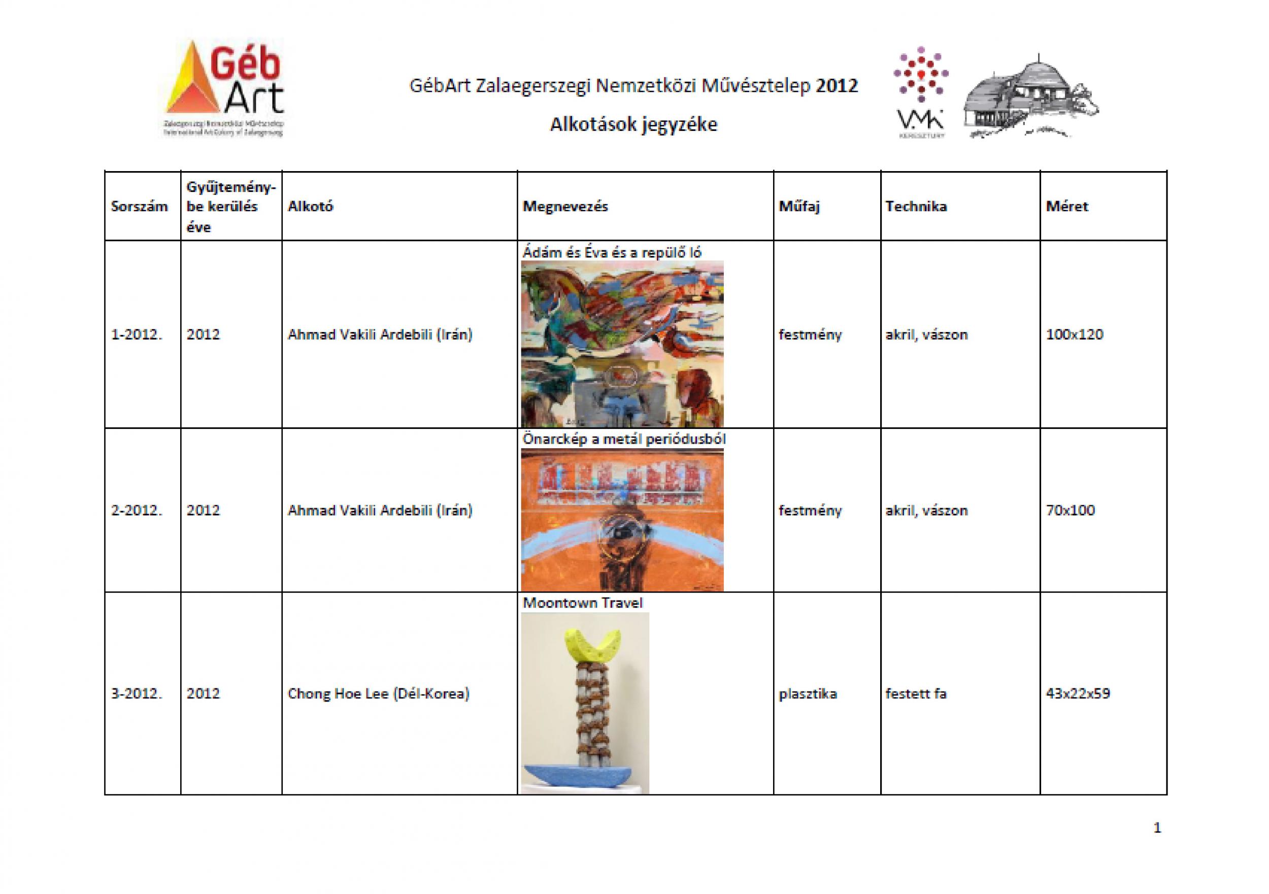 2012. évi alkotások jegyzéke