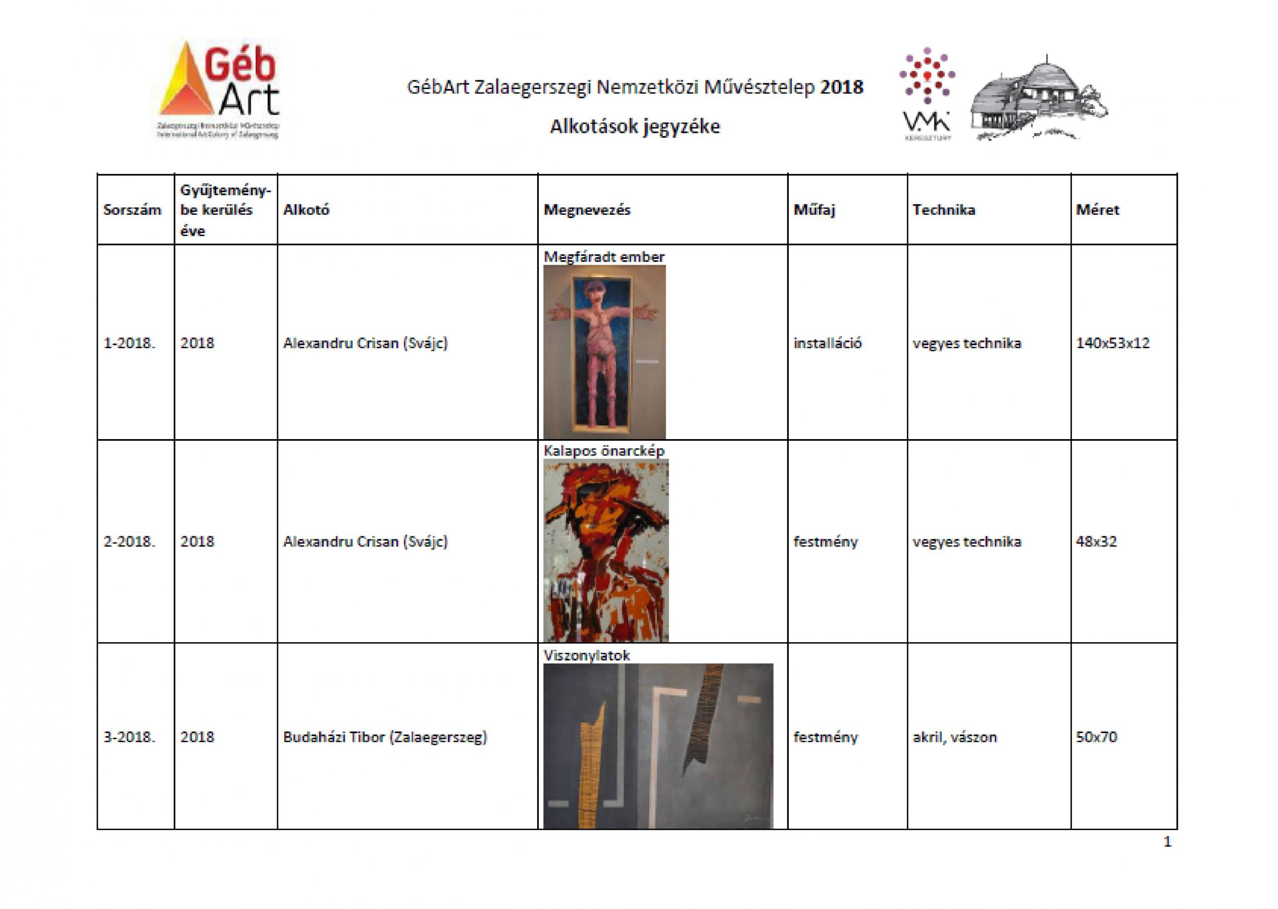 2018. évi alkotások jegyzéke