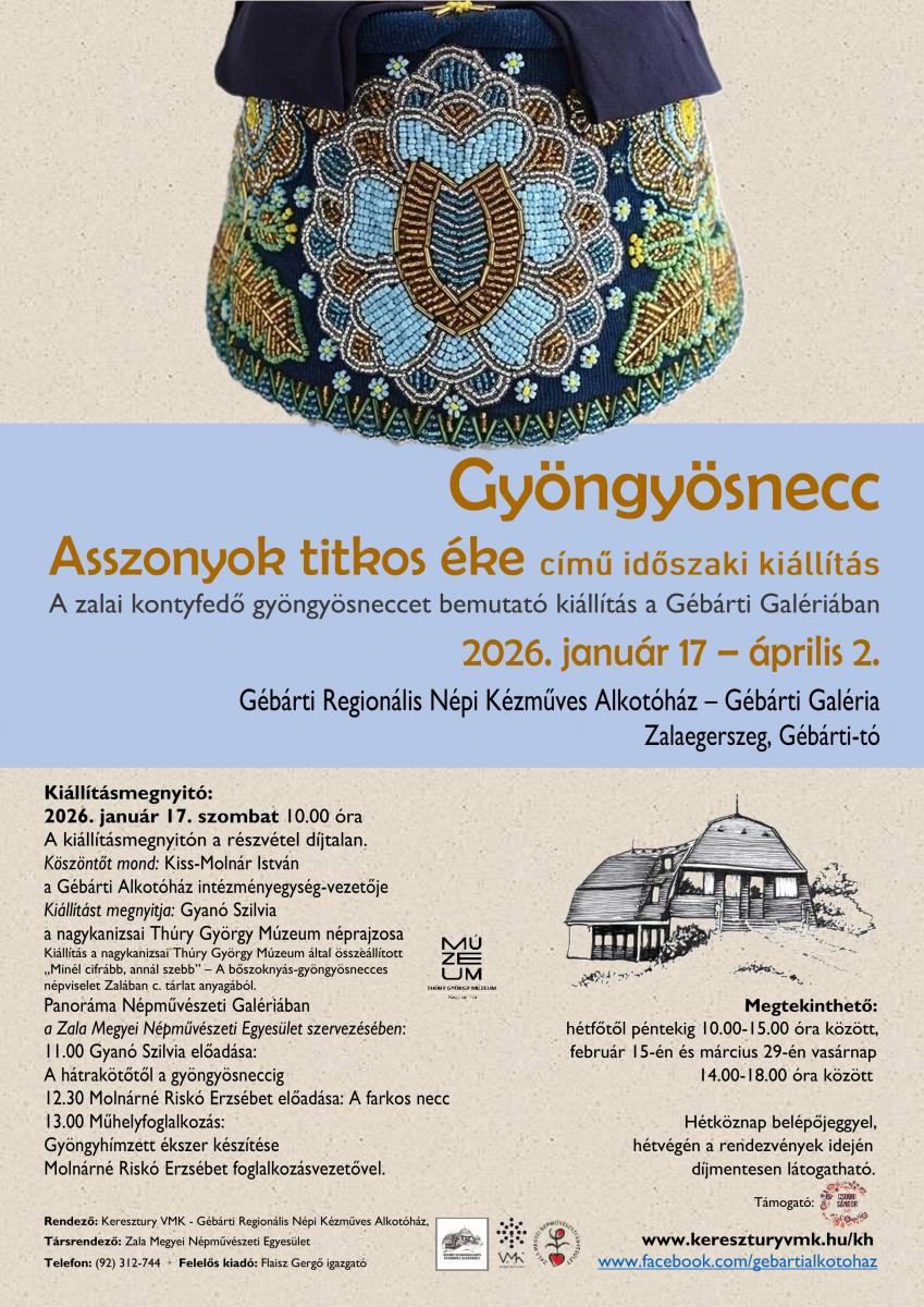 – A bőszoknyás-gyöngyösnecces népviselet Zalában c. tárlat anyagából.