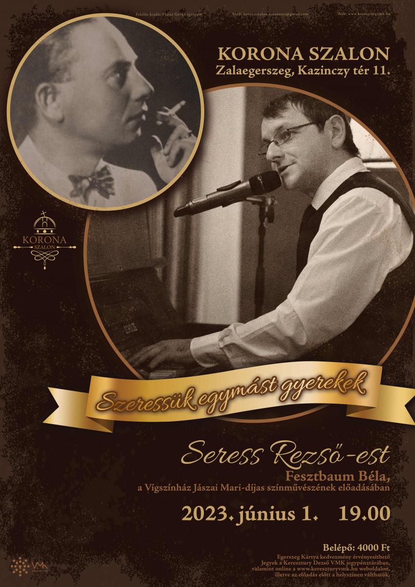 Füstös, pesti kiskocsma, a sarokban öreg pianínó, mellette egy legendás előadó. Az est főszereplője a különös sorsú magyar világsláger, a Szomorú vasárnap szerzője, Seress Rezső. Dalainak és a korszak anekdotáinak segítségével megidézzük ezt a jellegzetesen pesti alakot, aki szinte soha nem hagyta el szeretett hetedik kerületét, és évtizedekig volt meghatározó szereplője a pesti éjszakának. Egyedi humora és dalainak keserédes melankóliája lett a védjegye; egyszerre idézik a ’30-as, ’40-es évek mozgalmas, tragikus pillanatait, és válnak azóta is mindenkor aktuális szívüggyé, vigasztalóvá, útitárssá.