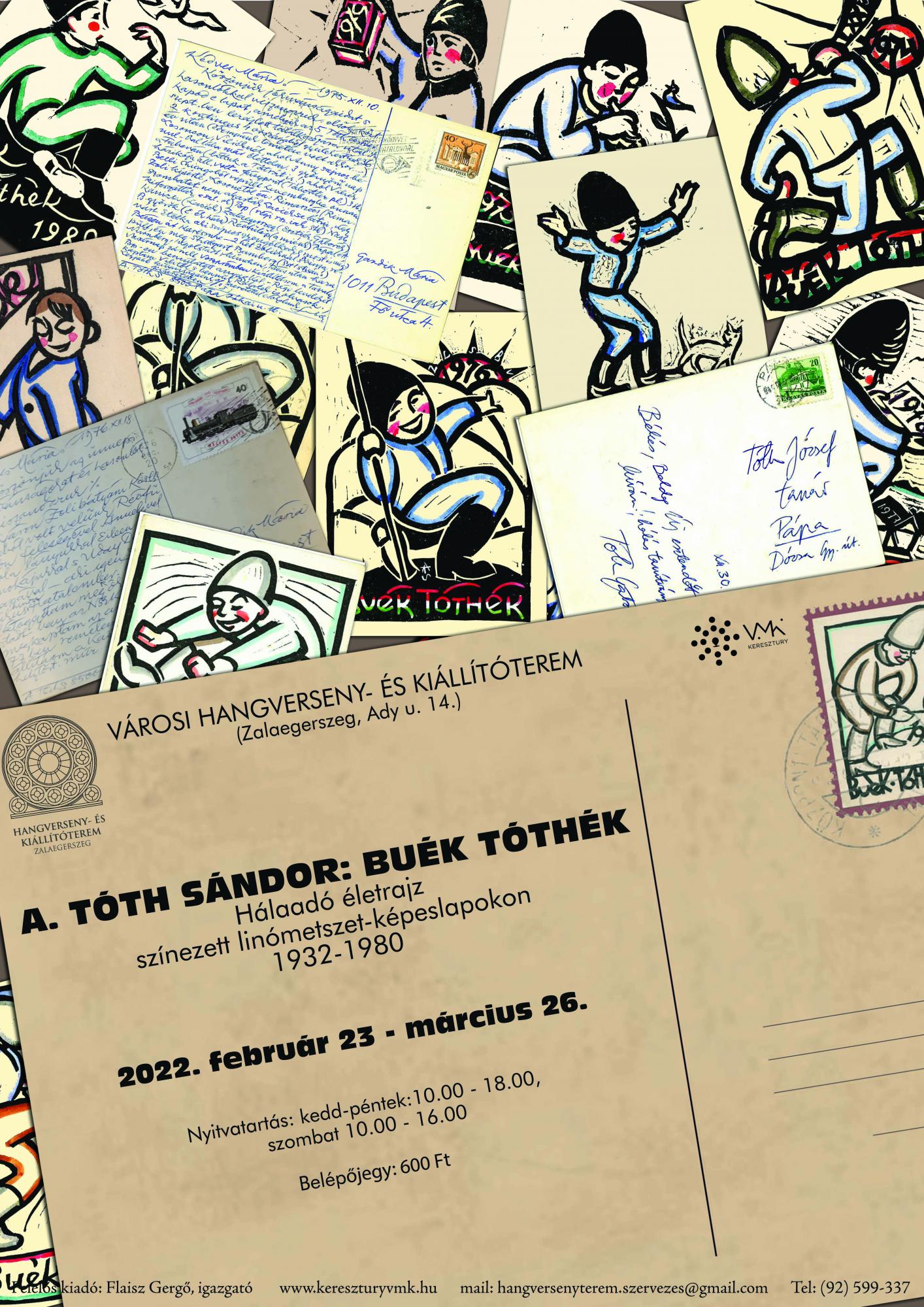 A Tóth Sándor művészeti tevékenységének egyik legérdekesebb színfoltja az a kézzel átfestett újévi képeslap linómetszet-sorozat „BUÉK Tóthék” címmel, amit nagy következetességgel (1932-1980 között) minden évben elkészített, és ami egyedülálló a magyar, de bátran kijelenthetjük, az európai művészeti életben. Külön érdekesség, hogy a képeslapok elsődleges főszereplője Tamási Áron „Ábel-figurája”. A képeslapok témája nem volt független a nagy történelmi eseményektől, tehát egy vizuális kor- és családtörténet magas művészi kifejezőerővel.