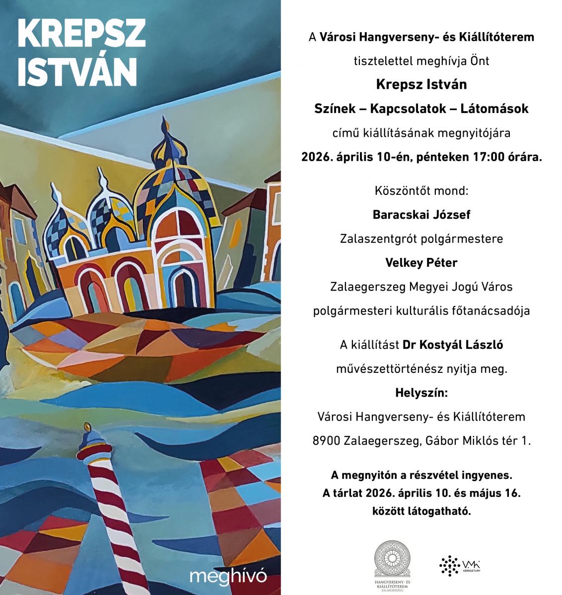 Krepsz István festőművész „Színek – Kapcsolatok – Látomások” című kiállítására.