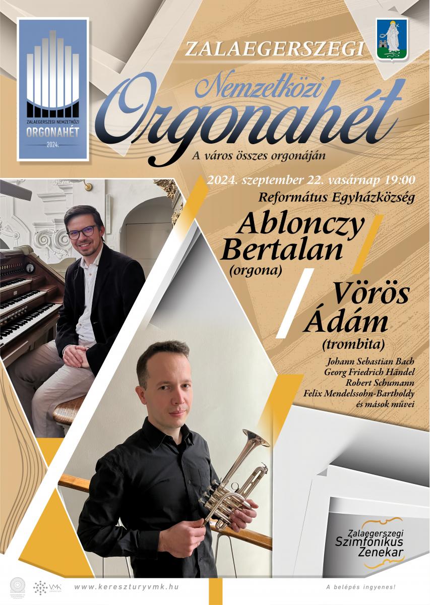 Közreműködik Ablonczy Bertalan, a bécsi Domonkos templom orgonistája, az Orgonahét visszatérő vendége, valamint Vörös Ádám, a Győri Filharmonikus Zenekar trombitaművésze.