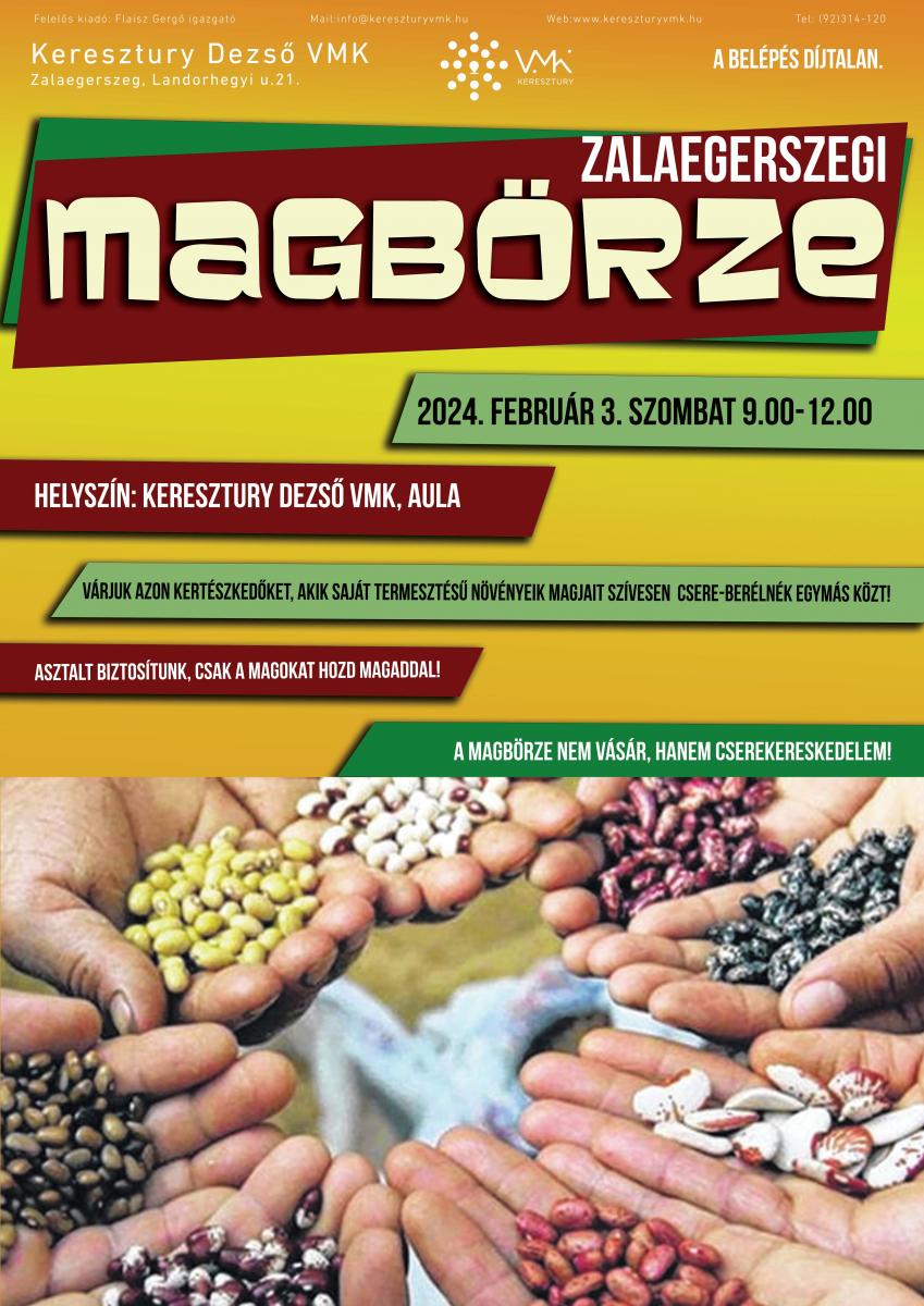 A csere-berére csak olyan, saját kertből származó szabadelvirágzású zöldségeket, fűszernövényeket, gabonák magját, illetve gumókat, hagymákat, töveket, hajtásokat, oltóvesszőket, palántákat várunk, amiket a magbörze résztvevője már 2-3 éve termeszt, fenntart, jól ismer. Így az esemény résztvevői nem csak magokat (vagy egyéb szaporítóanyagot) cserélnek egymással, hanem az adott fajta tulajdonságaira, termesztésére, felhasználására vonatkozó tudást is továbbadják. Ilyen módon nagyban hozzájárulhatunk a helyi fajták és tájfajták fenntartásához és a hozzájuk kapcsolódó hagyományos tudás megőrzéséhez.